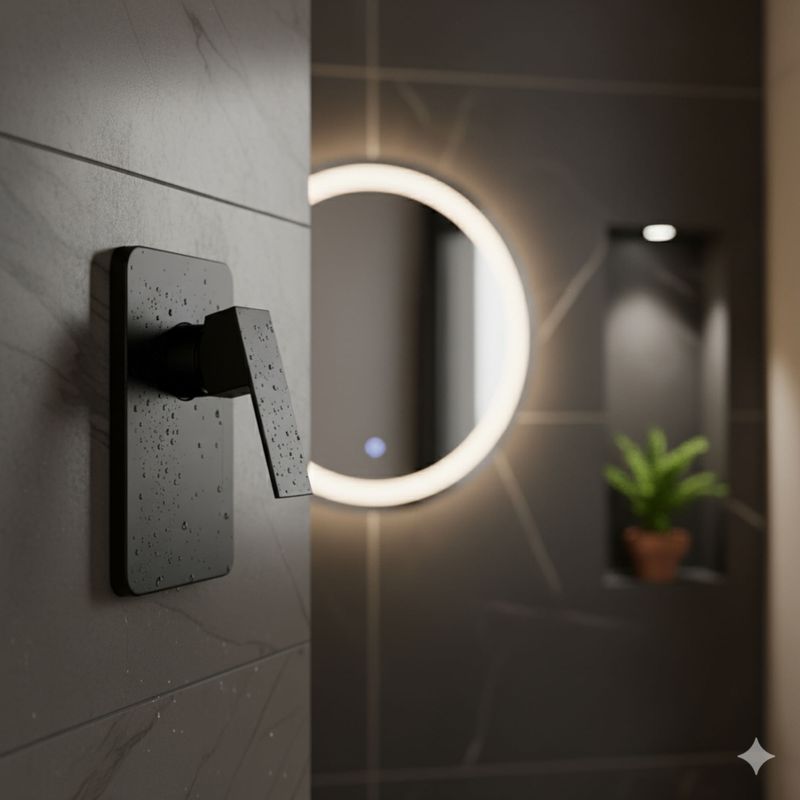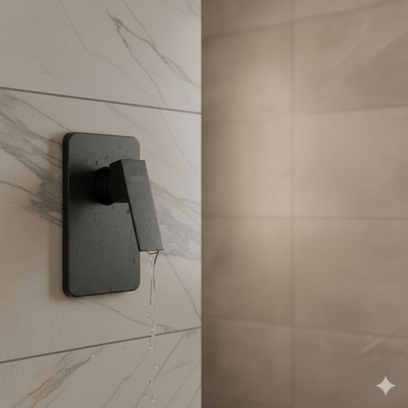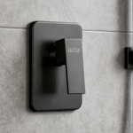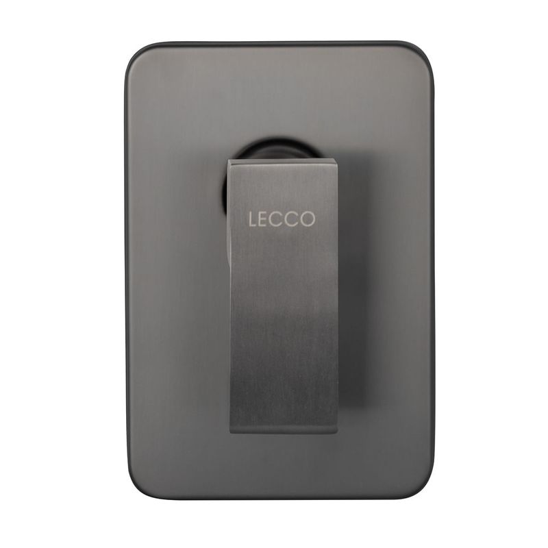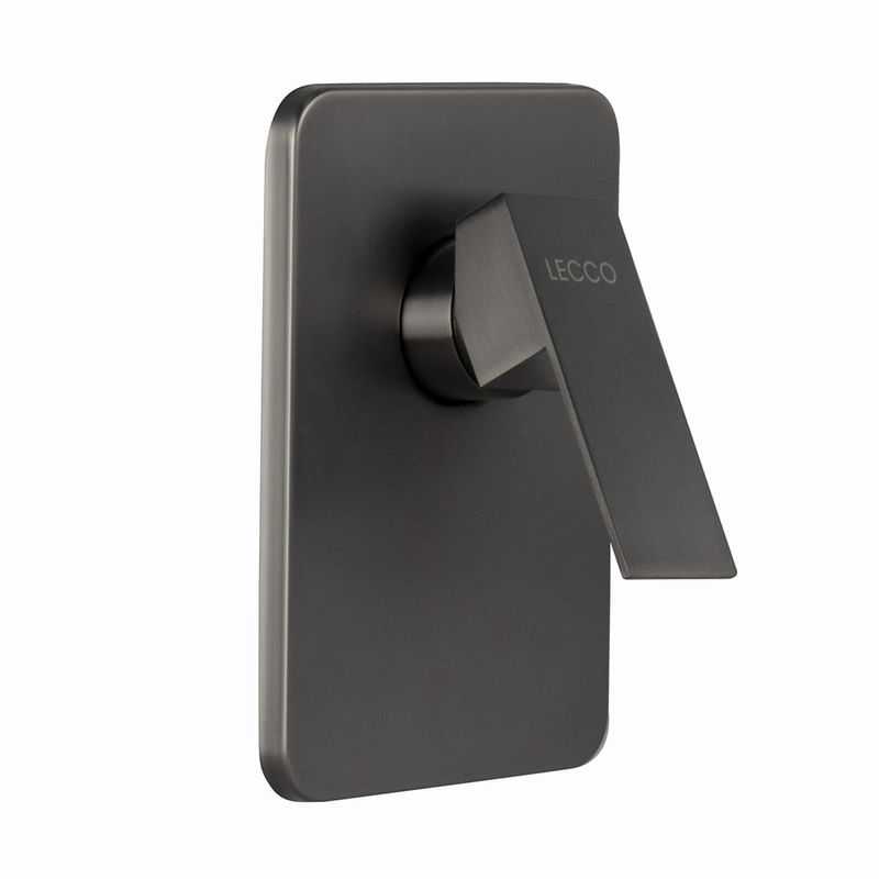 Grifería para ducha en acero inoxidable grafito. Su diseño moderno de ángulos rectos la convierte en un elemento decorativo dentro del baño. La manija, en armonía con el cartucho interno, permite una suave y rápida manipulación para mezclar el agua caliente y fría en menos de un cuarto de giro. Asegura una alta resistencia al rayado y al desgaste. Un producto de fácil limpieza, y resistente a la corrosión.