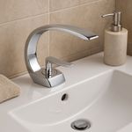 Grifería para lavamanos metálica cromada con diseño vanguardista de ángulos rectos y curvos que la convierten en una pieza decorativa y estética dentro del baño. Su cuerpo bajo es ideal para diferentes diseños de lavamanos como placas de sobreponer, suspendidos y empotrados. Esta grifería cuenta con un sistema de aireador que permite obtener un chorro de agua espumoso y también un ahorro de agua. Es un producto de fácil limpieza, ahorrador de agua, resistente al rayado y a la corrosión.