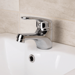 Grifería para lavamanos metálica cromada con diseño pequeño de curvas redondeadas. Su cuerpo bajo es ideal para diseños de lavamanos pequeños. Esta grifería cuenta con un sistema de aireador que permite obtener un chorro de agua espumoso y también un ahorro de agua. El cuerpo robusto es fabricado en aleación metálica, cromado y/o color de alto espesor que asegura una alta resistencia al rayado y al desgaste. Es un producto de fácil limpieza, ahorrador de agua y resistente a la corrosión.