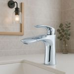 Grifería para lavamanos metálica cromada con diseño moderno y contemporáneo que la convierten en una pieza decorativa y estética dentro del baño. Su cuerpo bajo es ideal para diferentes diseños de lavamanos como placas de sobreponer, suspendidos y empotrados. Esta grifería cuenta con un sistema de aireador que permite obtener un chorro de agua espumoso y también un ahorro de agua. Es un producto de fácil limpieza, resistente al rayado y a la corrosión.