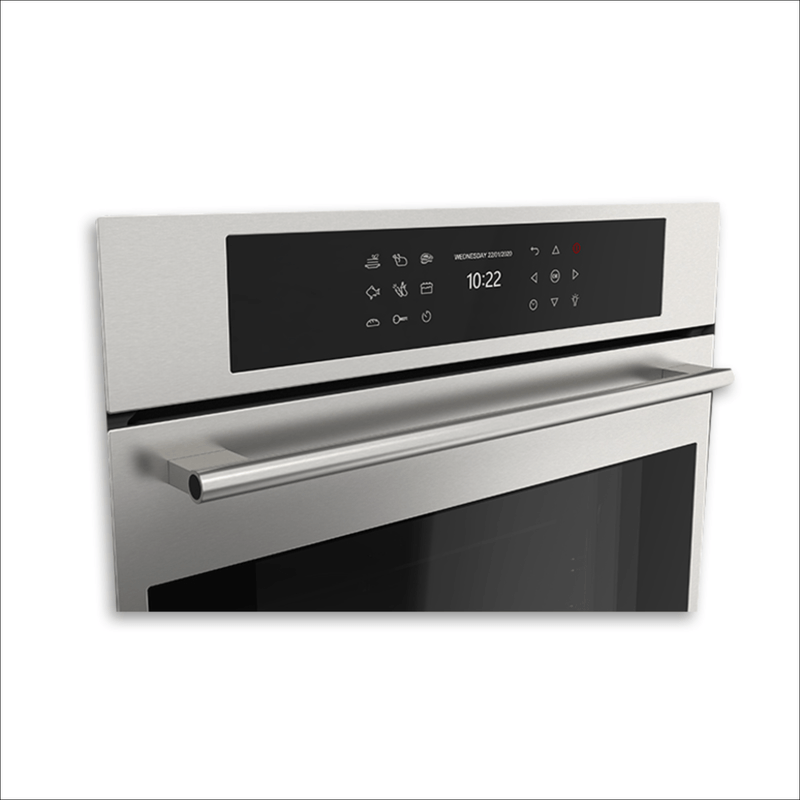 En el panel de control hay varias funciones, programas de cocción predefinidos y la posibilidad de modificar las recetas. Gracias a la sonda de temperatura meat probe, es posible conseguir resultados perfectos, controlando el progreso de la cocción midiendo la temperatura en el interior de los alimentos. Los accesorios de serie incluyen dos juegos de guías telescópicas, sonda de temperatura, bandeja esmaltada, rejilla plana, bandeja esmaltada para airfry.