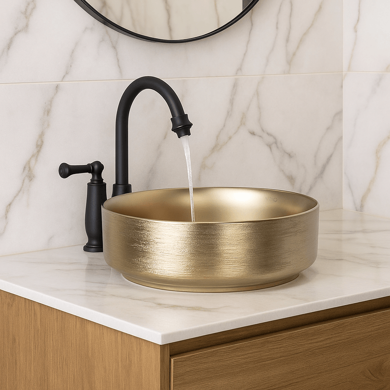 Lavamanos Galileo Gold Tipo Vessel En Porcelana 36.5x36.5x12.5 Cm.