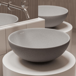 Descubre el nuevo lavamanos spazio ii petra: acabados rústicos, belleza artesanal y resistencia superior. Fabricado en porcelana sanitaria 100%.