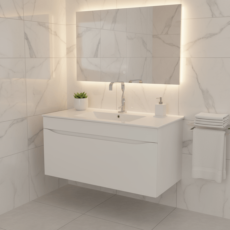 Mueble Poliuretano Ario Blanco Con Placa Lavamanos 100 x 46 Cm