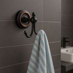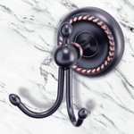 Percha doble metálica acabado anticado. Este accesorio refleja una tendencia clásica y rústica. Cuenta con un sistema de fijación oculto que evita la acumulación de impurezas y facilita la limpieza. Un accesorio combinable con las demás piezas de la colección prato.