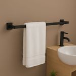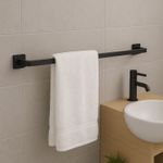 Toallero barra metálico con acabado negro, un complemento infaltable para el baño moderno practico y con un sistema de fijación oculto que evita la acumulación de impurezas y facilita la limpieza. Un accesorio resistente y combinable con las demás piezas de la colección livorno.