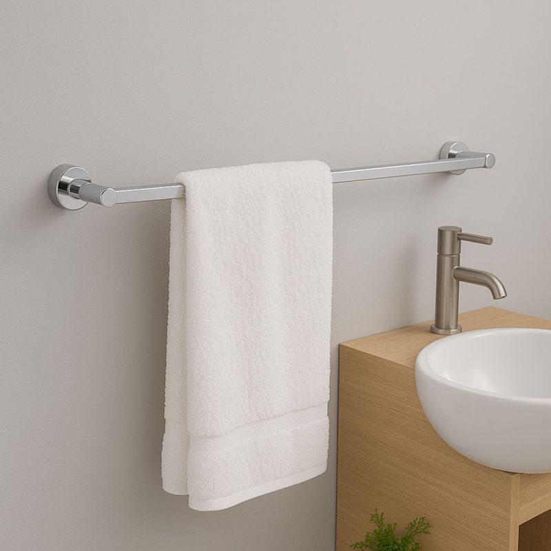 Toallero barra metálico cromado con un diseño orgánico y fluido que refleja una tendencia moderna y contemporánea. Un complemento ideal y práctico para el baño. Cuenta con un sistema de fijación oculto que evita la acumulación de impurezas y facilita la limpieza. Un accesorio combinable con las demás piezas de la colección de accesorios de baño turin.